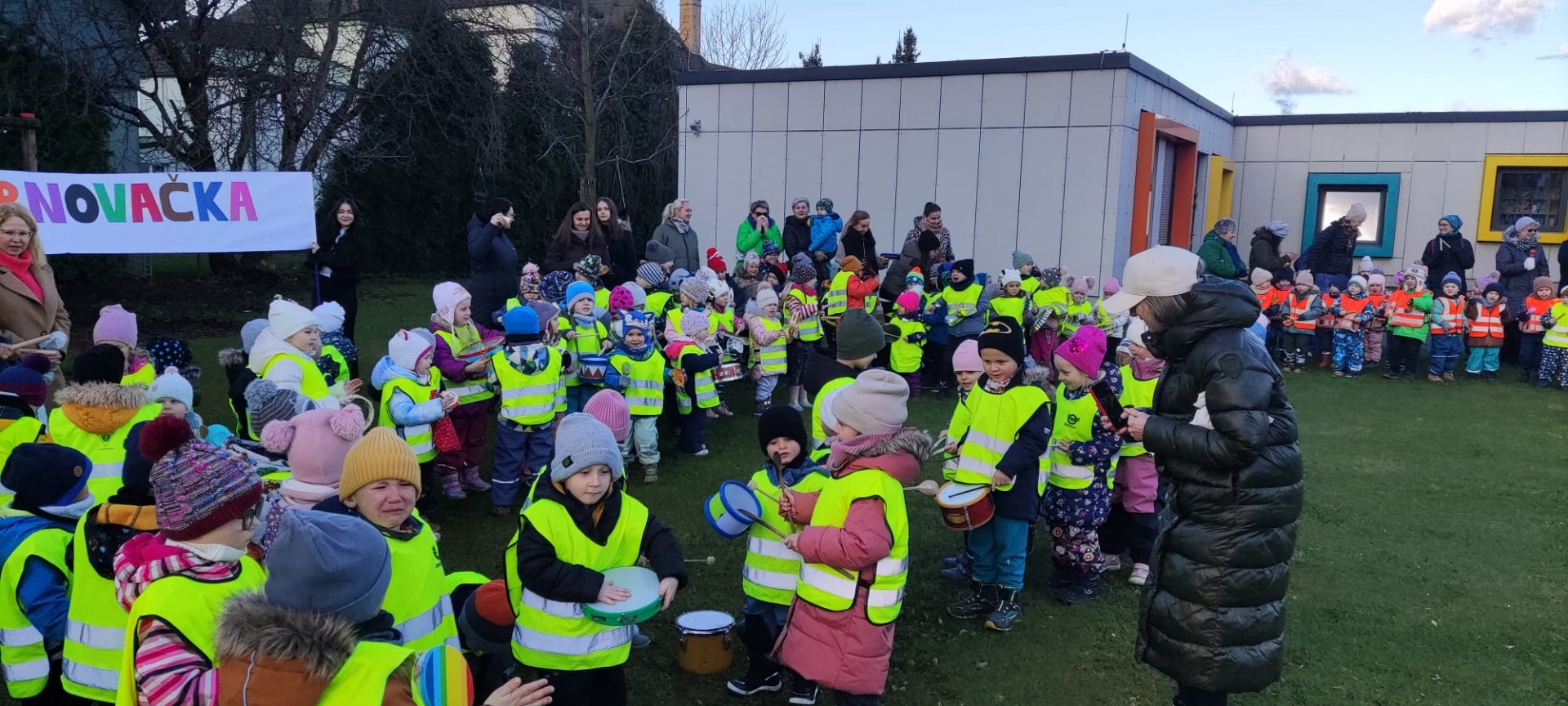 Dnes se děti zúčastnily celorepublikové akce s názvem Bubnovačka, která probíhá v rámci Týdne za dětství bez násilí. Smyslem této akce je upozornit na význam prevence násilí v blízkých vztazích a symbolicky podpořit děti, jejichž hlas často není slyšet.