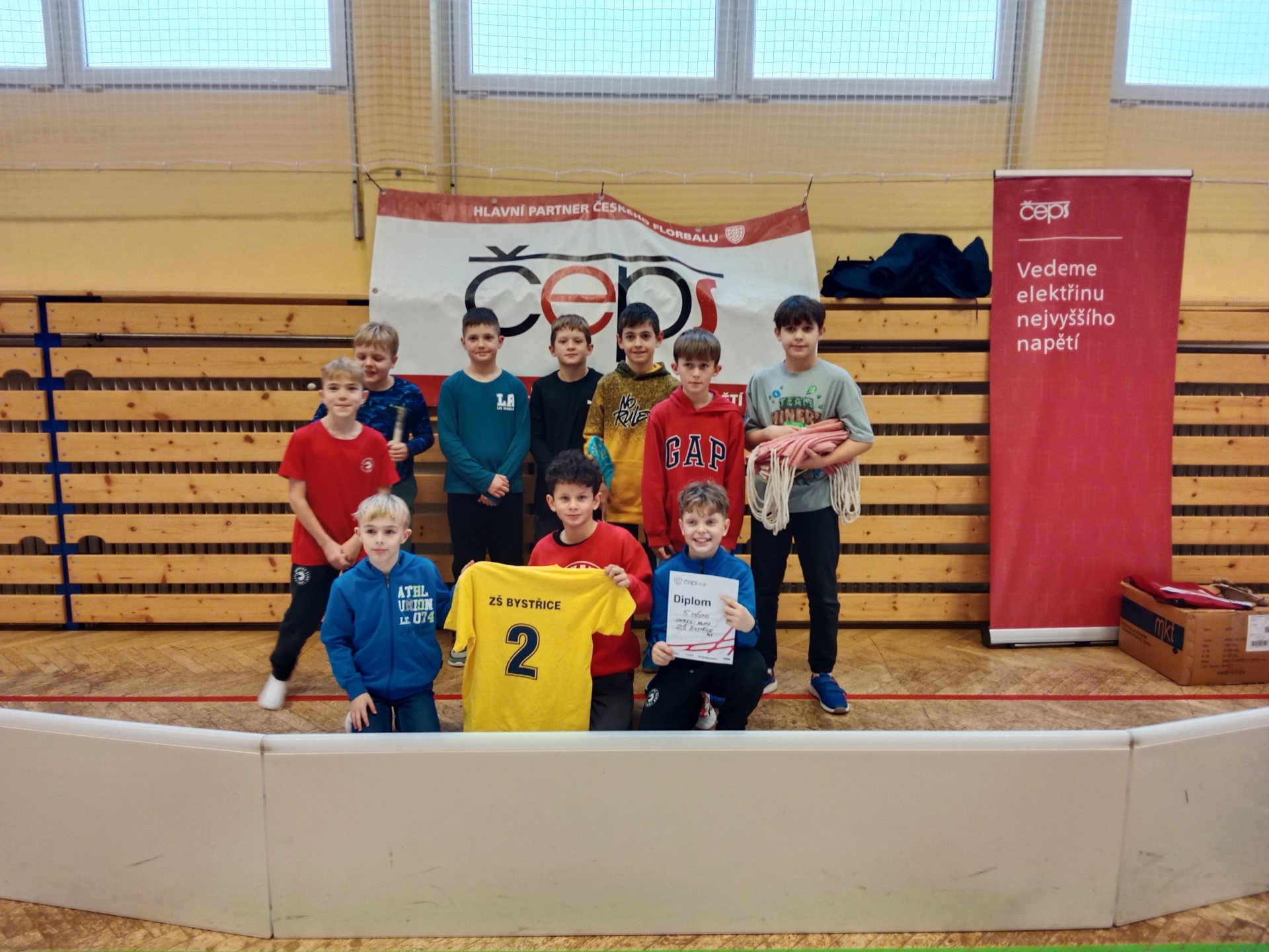 Ve středu 26. 11. 2025 proběhlo v tělocvičně ZŠ Jablunkov okresní kolo ve florbalu „ČEPS CUP 2025/2026". Turnaje se zúčastnilo celkem sedm týmů z místních základních škol - ZŠ Nýdek, ZŠ Mosty u Jablunkova, ZŠ Jablunkov, ZŠ Lomná, ZŠ Bystřice, ZŠ Návsí a ZŠ Písečná. ZŠ Bystřice reprezentovalo celkem 10 hráčů ze čtvrtých a pátých ročníků. Kluci nastoupili na hřiště s nadšením a odhodláním. Zápasy byly napínavé od prvních do posledních vteřin. V prvním duelu se kluci utkali s družstvem ZŠ Nýdek. Zápas však dopadl v neprospěch našich žáků. Tým z Nýdku vyhrál 5:1. Naši kluci se ale nenechali odradit, vzájemně se povzbuzovali a bojovali o každý míček. Druhé utkání už pro naše florbalisty vypadalo nadějně, výhra byla na dosah ruky, ale ve dvacáté vteřině dal soupeř vyrovnávací gól a skóre tak bylo 4:4. Zklamání bylo evidentní. Ve třetím a zároveň závěrečném utkání chlapci ukázali týmového ducha, hra byla plná dramatických zvratů, rychlých protiútoků a obětavého blokování střel. Nadšení hráčů a vzájemná podpora hnala kluky dopředu. Po každém úspěchu skákali radostí a povzbuzovali se. Díky jejich sportovnímu nadšení a zápalu se jim podařilo zvítězit nad týmem ZŠ Návsí. Ze sedmi družstev se tak umístili na pátém místě. I přes počáteční neúspěchy žáci hráli s maximálním nasazením a dali do hry vše.