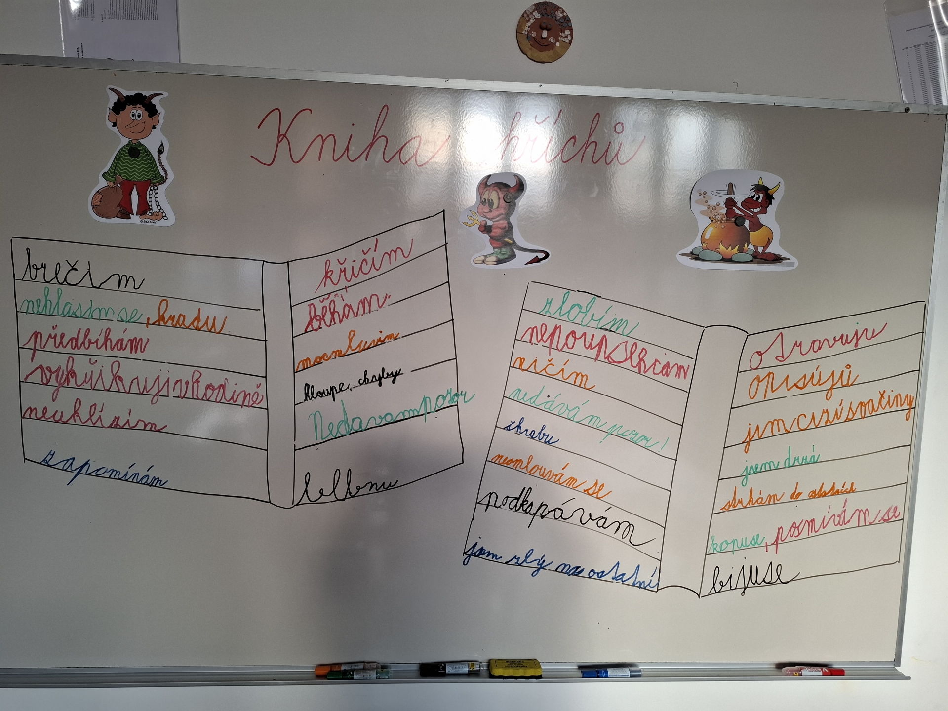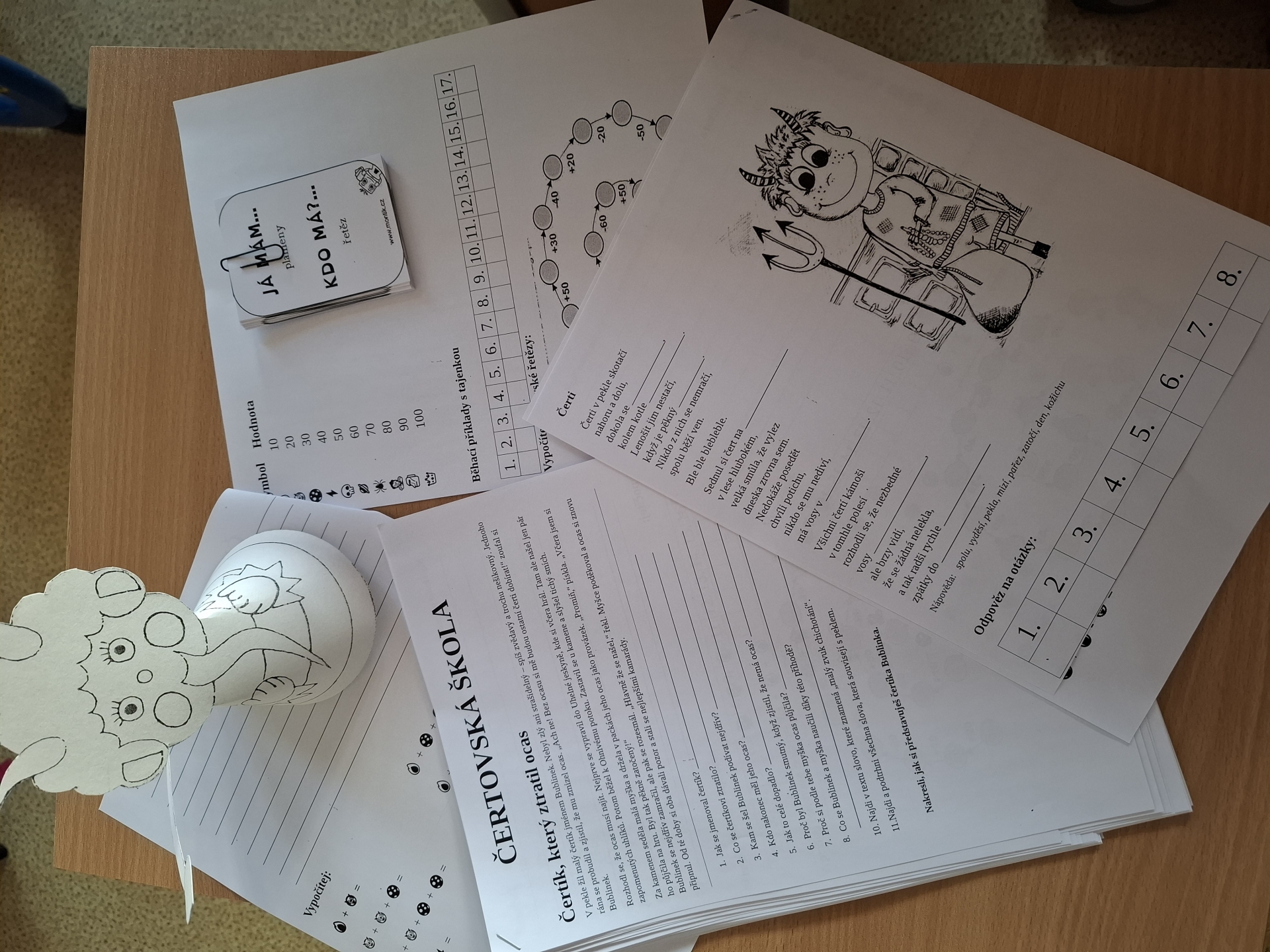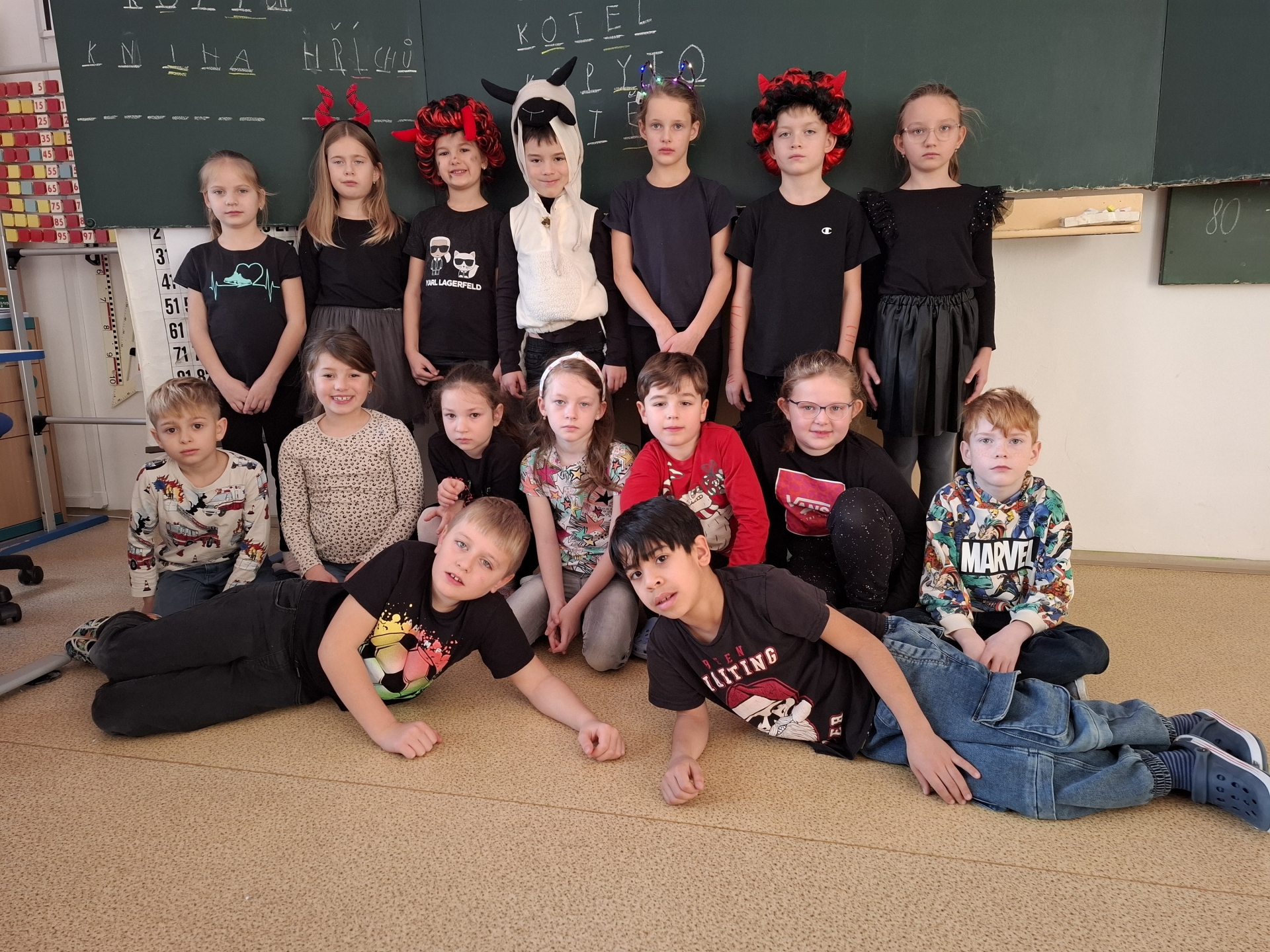 Děti druhých tříd, naši čerti a naše čertice v rouše beránčím, dnes navštívili čertovskou školu. Četli, psali, počítali, řešili, cvičili, tančili, vyráběli a hlavně si užívali školu jinak.