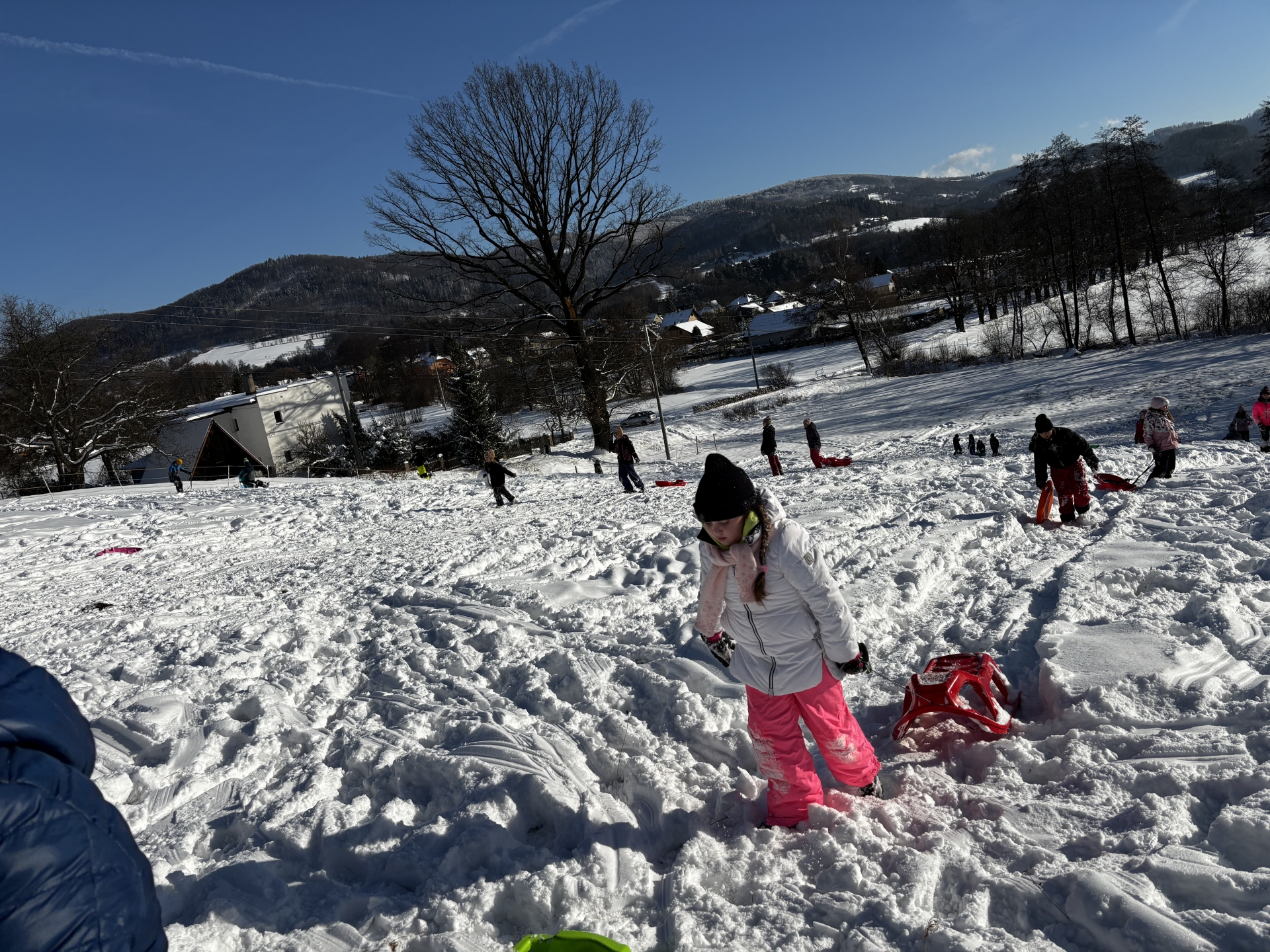 Boby, sáně, talíře a další nepřeberné množství druhů kluzáků využily děti prvního stupně v týdnu od 12. do 15. ledna na oblíbeném bystřickém kopci. Vstup nám umožnila paní Alice Walaská, které děkujeme. A teď už pojďme za úsměvy dětí na fotografiích...